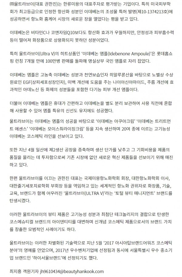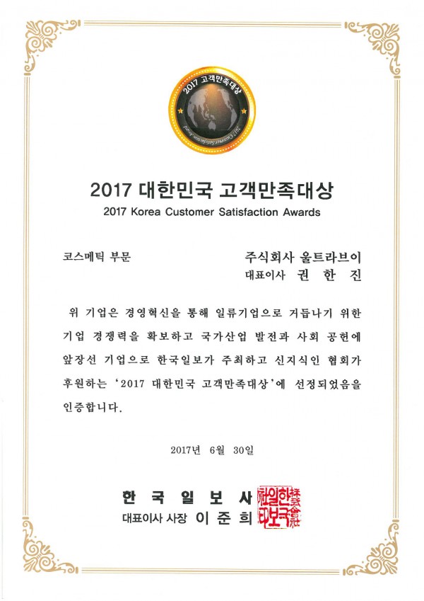 [뉴스] 울트라브이 -2017 대한민국 고객만족대상 /한국일보