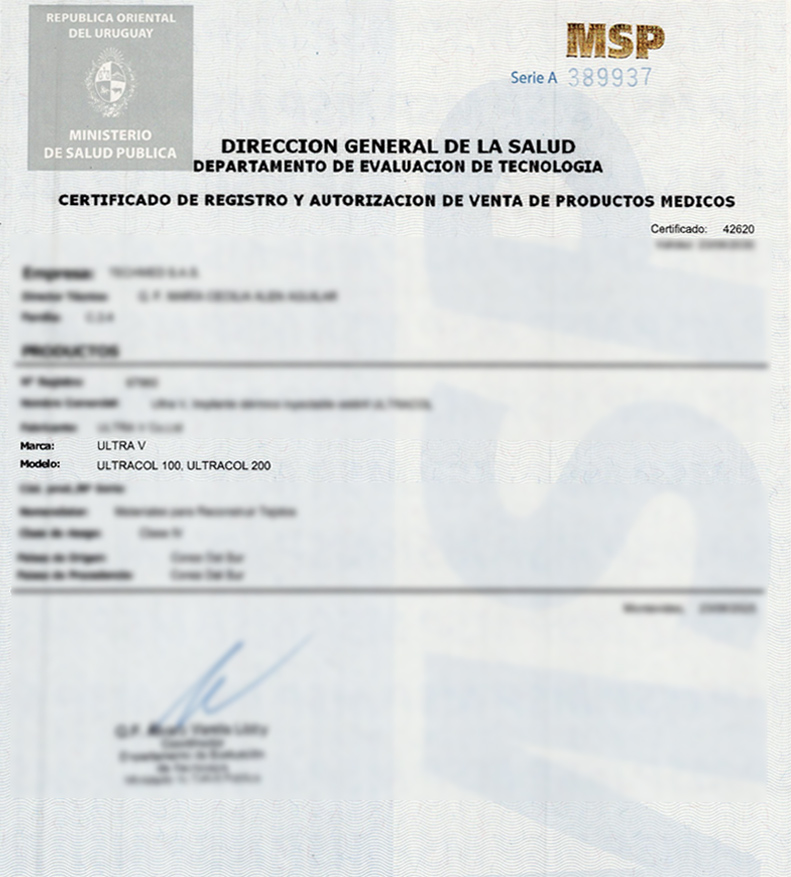 바이오 메디컬 뷰티그룹 울트라브이(UltraV, 대표이사 권한진)의 콜라겐 기반 주사형 의료기기 ULTRACOL100과 200이 우루과이 보건부(MSP, Ministerio de Salud Pública)로부터 정식 품목허가를 획득했다. 이번 허가는 2024년 11월부터 시작된 등록 절차를 기반으로, 관련 부서 간 긴밀한 협업과 철저한 사전 준비를 통해 이뤄졌다. 이로써 ULTRACOL은 볼리비아, 아르헨티나, 에콰도르, 멕시코, 칠레에 이어 중남미 여섯 번째 국가에서 등록을 완료했다.