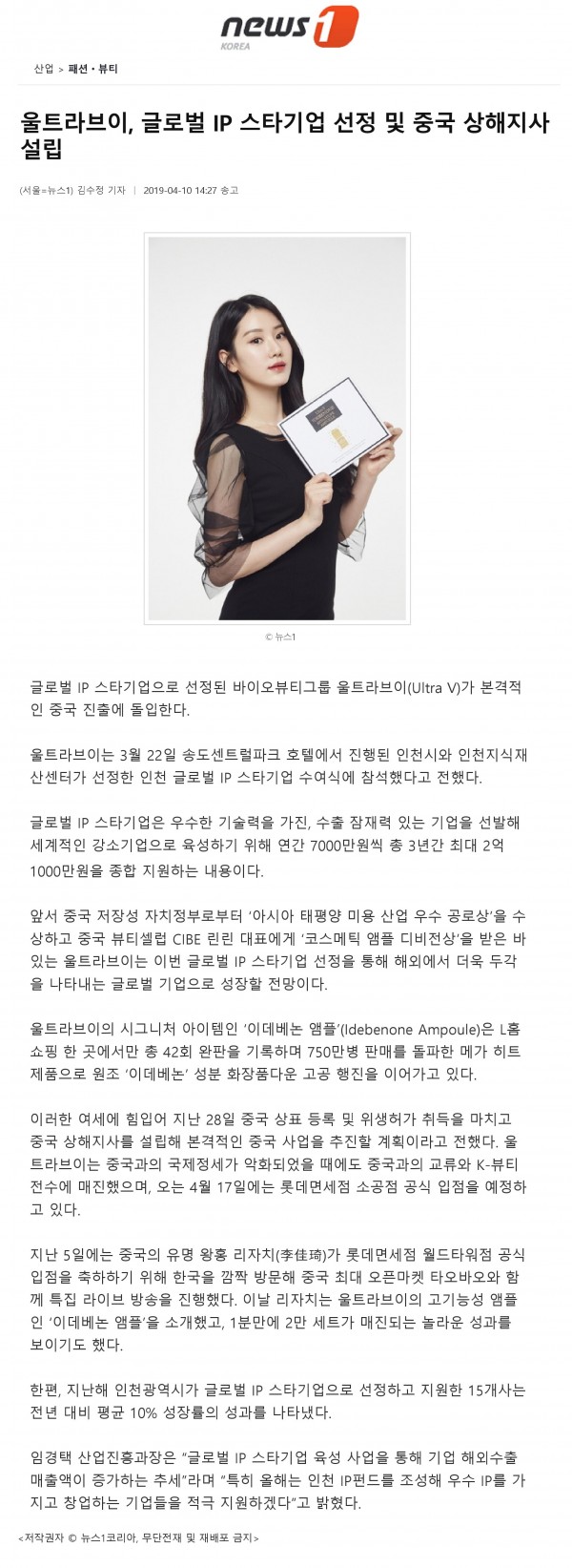 [뉴스] 울트라브이, 글로벌 IP 스타기업 선정 및 중국 상해지사 설립