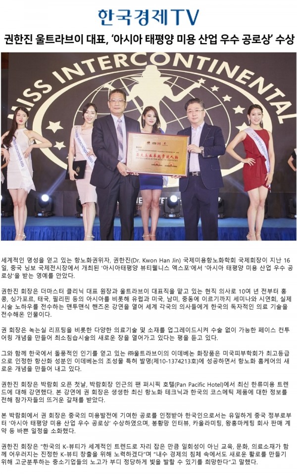 [뉴스] 권한진 대표, ‘아시아 태평양 미용 산업 우수 공로상’ 수상