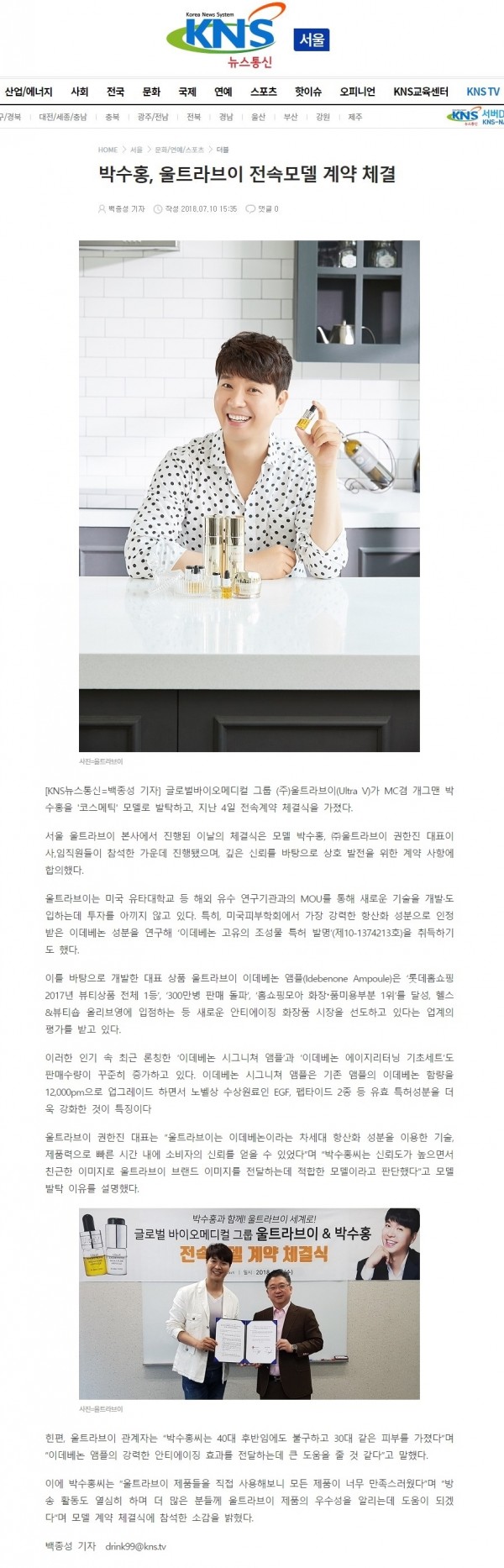 [뉴스] 박수홍, 울트라브이 전속모델 계약 체결