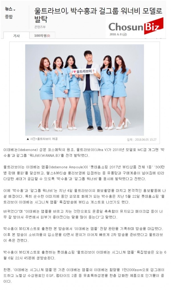 [소식] 울트라브이, 박수홍과 걸그룹 워너비 모델로 발탁