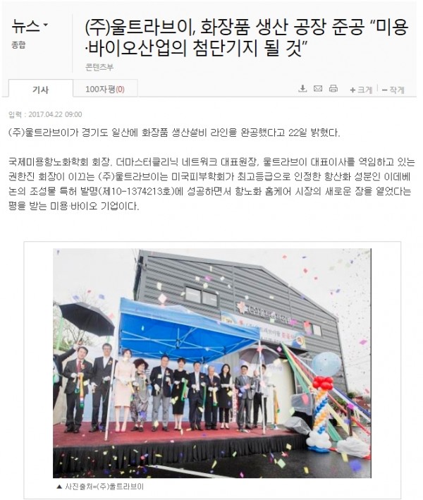 [뉴스] 화장품생산공장 준공! 미용.바이오산업의 첨단기지 될 것