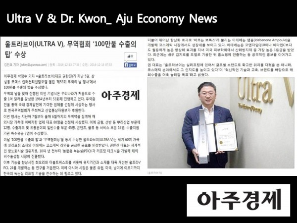 [아주경제] 울트라브이, 무역협회'100만불 수출의 탑' 수상